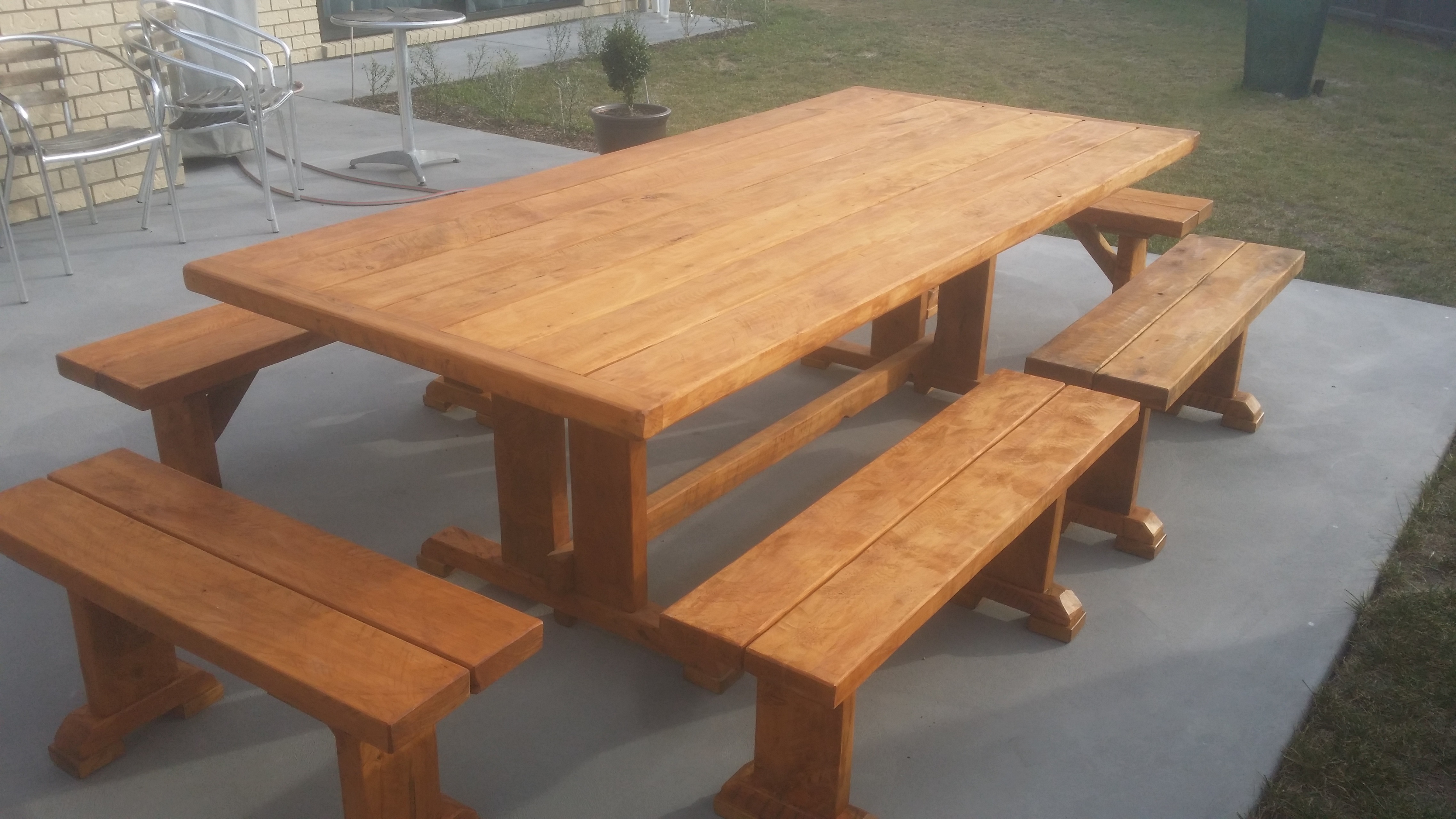 Great solid set using quality stain/ oil, glue with s/s & galv nails screws.